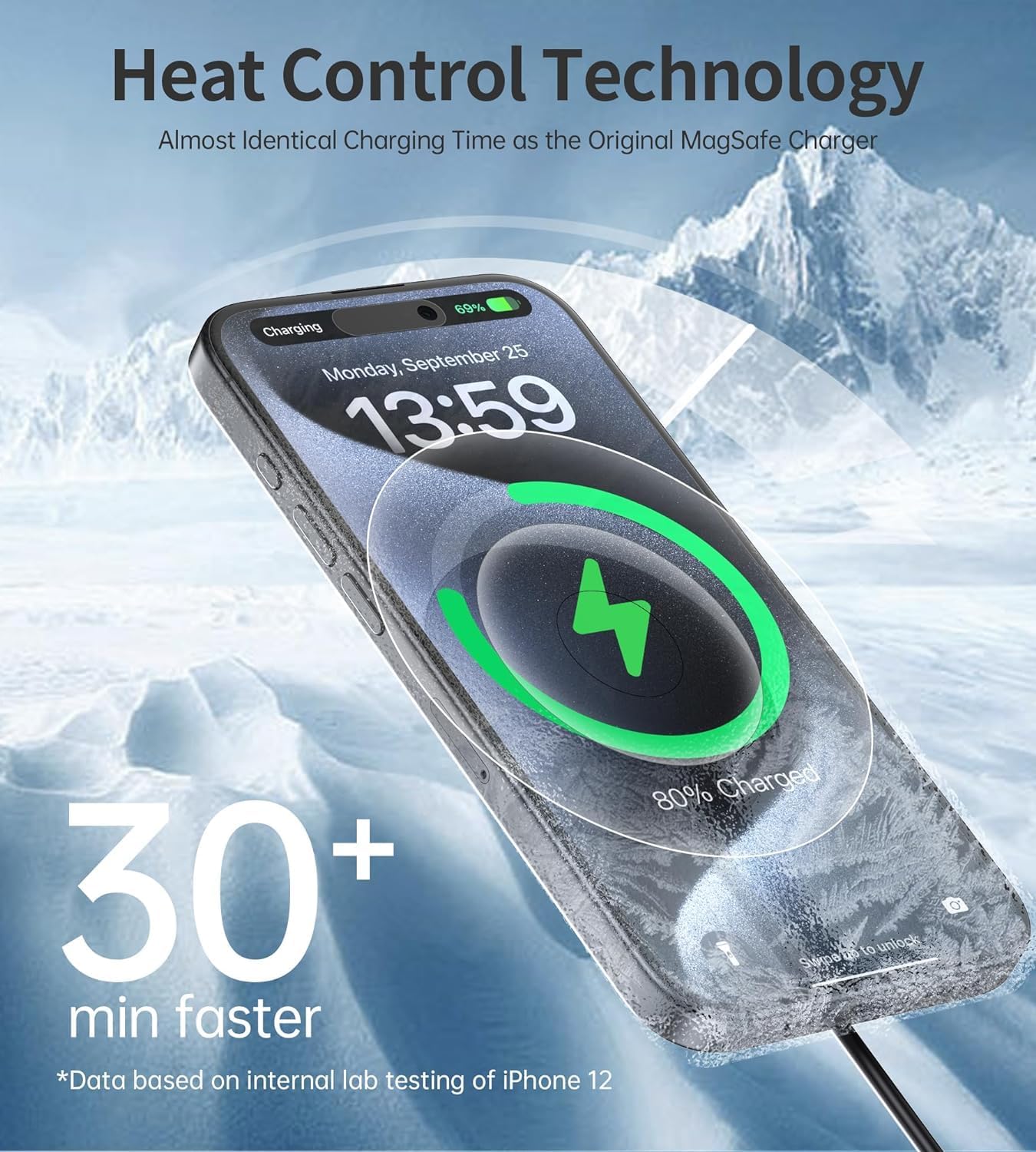 Fast & Safe – Charges iPhone from 0–100% in about 3–3.5 hours. Built-in ETL-certified chip protects from overheat, over-voltage, over-current, and short circuit.