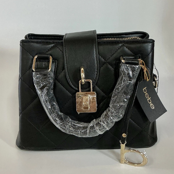 The Bebe Kellen Small Satchel combines everyday practicality with elegant style. Crafted from smooth faux leather, this compact bag features a secure zip closure, top handles, and a detachable crossbody strap for versatile wear. Its sleek black exterior, fabric lining, and organized interior pockets make it perfect for carrying essentials in chic, effortless fashion. A must-have accessory for modern, on-the-go women.