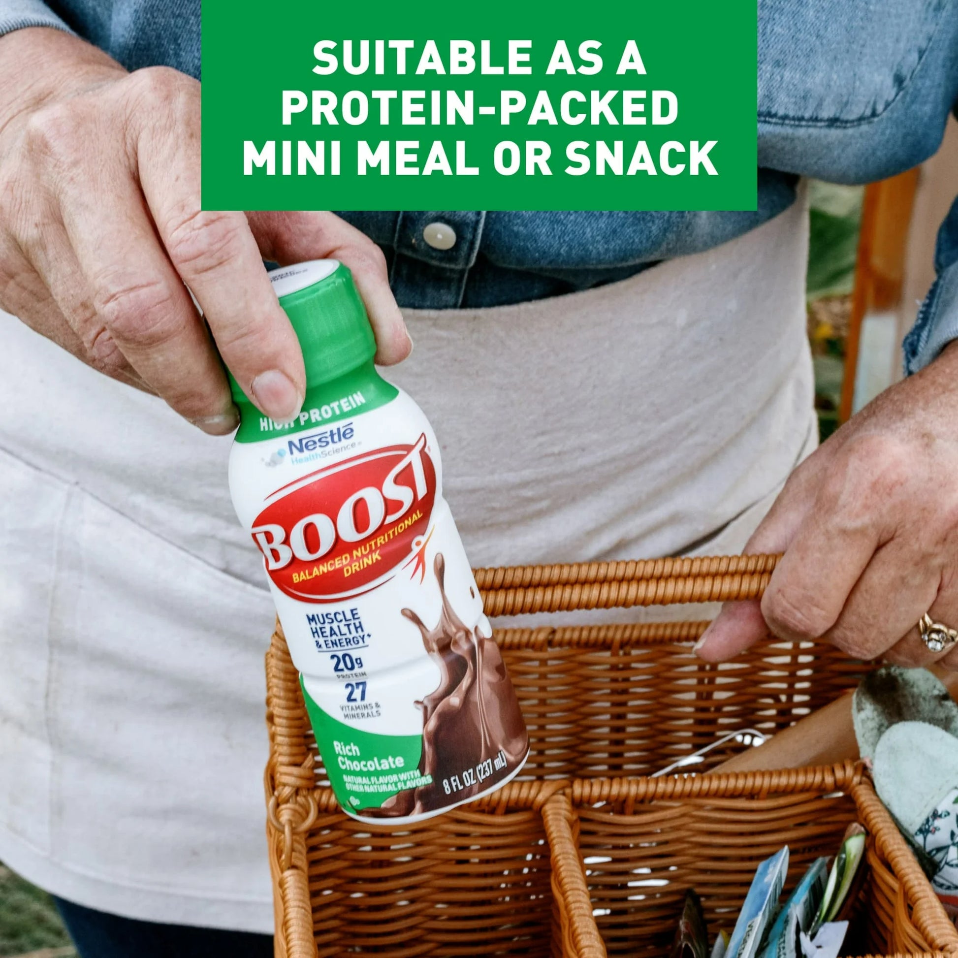 🥤 BOOST High Protein Nutritional Drink, Rich Chocolate - (8 fl oz Bottles) | 20g Protein + 27 Vitamins & Minerals | Energy & Muscle Support | Gluten-Free Shake