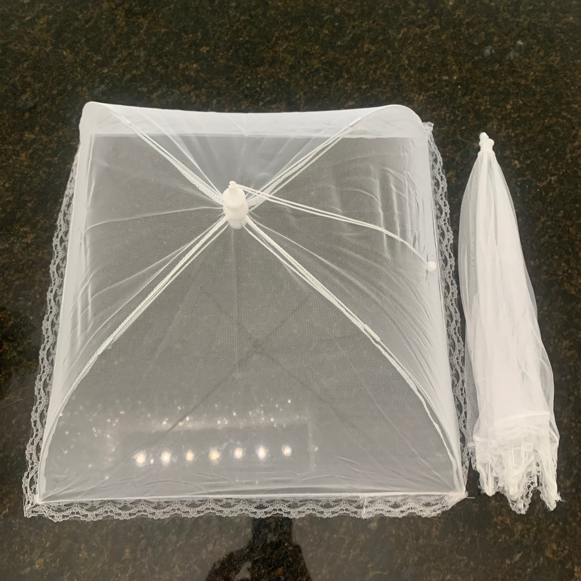 Bug Protection: Fine white nylon mesh with extra lace around the bottom to keep flies, bees, and pests away from your food.