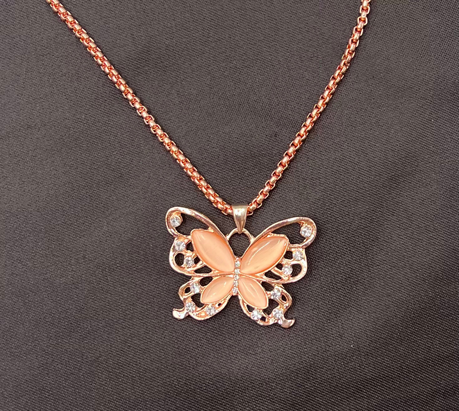 Grace your neckline with elegance and charm. This Butterfly Opal Necklace features a delicate pendant adorned with shimmering rhinestones and a luminous opal center. Lightweight and versatile, itβs the perfect blend of sparkle and style for everyday wear or special occasions.