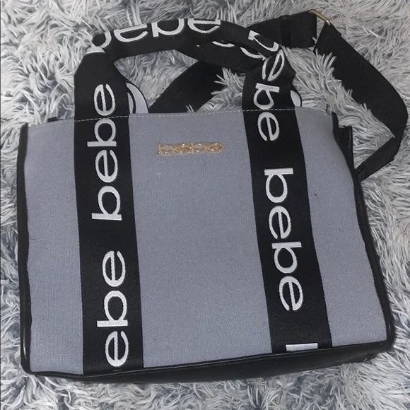 The Bebe Hana Canvas Small Satchel in denim is a stylish, versatile everyday bag. Featuring bold Bebe logo print, gold accents, and a spacious interior for all your essentials and girly must-haves. Wear it as a handbag or crossbody, perfect for work, errands, or casual outfits. A chic go-to bag for day-to-night style.