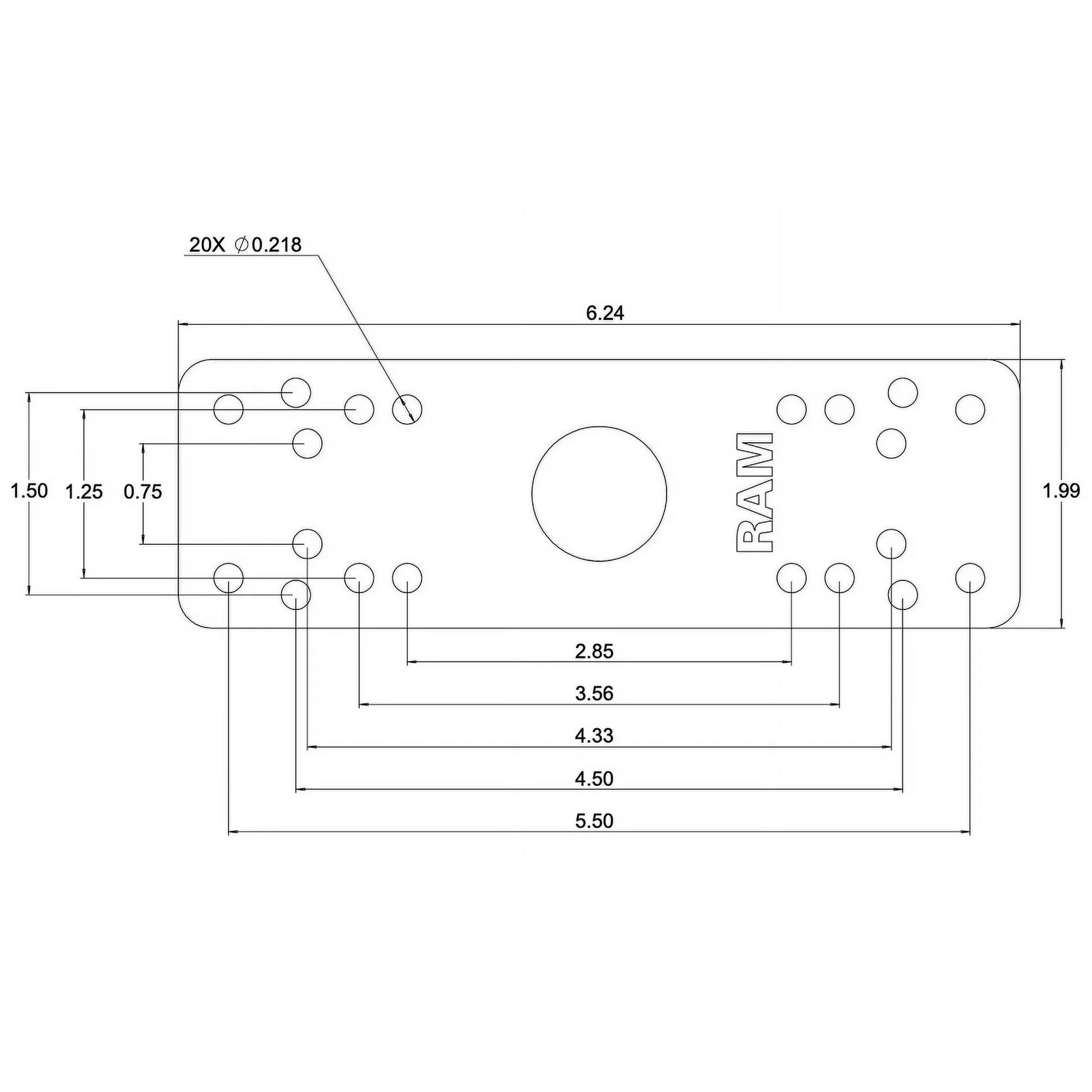 6.25" x 2" rectangle base with multiple hole patterns