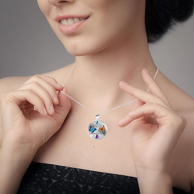 Keep a loved one close with this elegant silver butterfly necklace featuring the heartfelt engraving: “Those we love don't go away, They walk besides us everyday.”