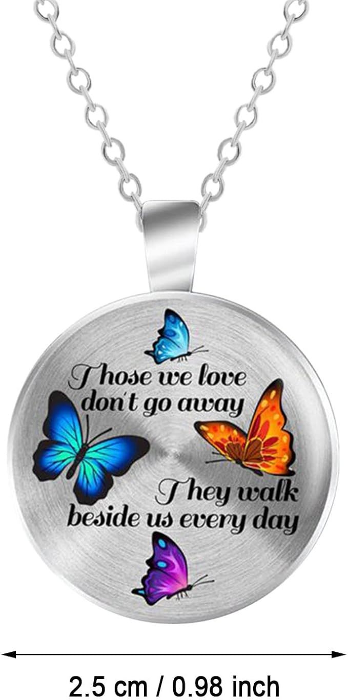 Butterfly Memorial Necklace – “Those we love don't go away” Silver Chain, 21 Inches