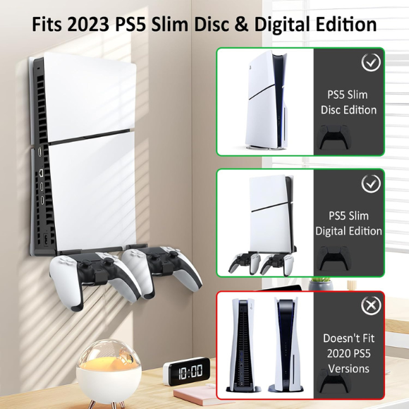 【Specially Designed】Our PS5 Slim wall mount is made of durable steel material, providing a secure and stable support for your PlayStation 5 Slim console 2023 (Disc/Digital Edition). 🛑NOTE: Incompatible with 2020 PS5 Versions.