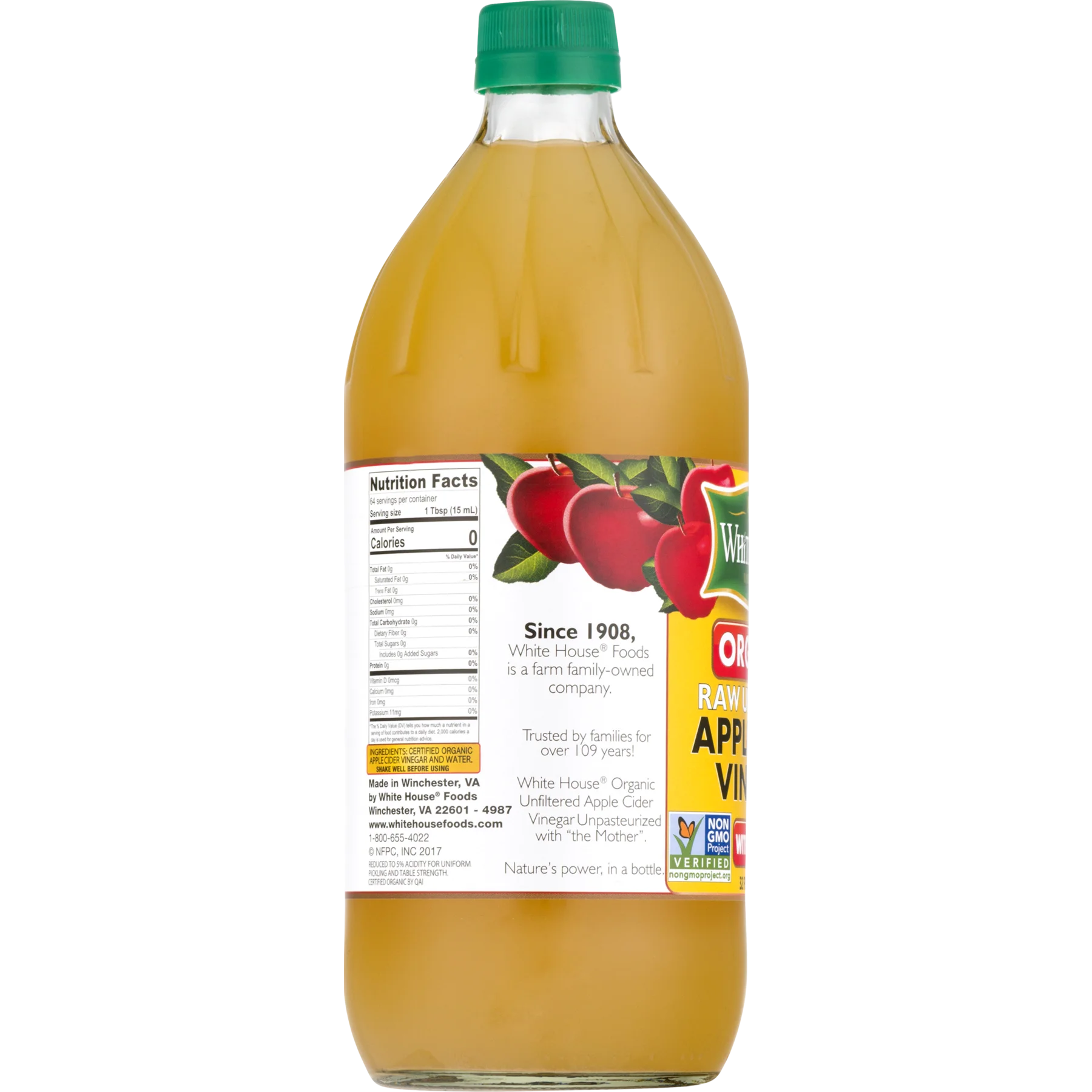 White House Organic Apple Cider Vinegar – Raw, Unfiltered & With the Mother – 32 Fl Oz | Non-GMO, All-Natural, Trusted Since 1908